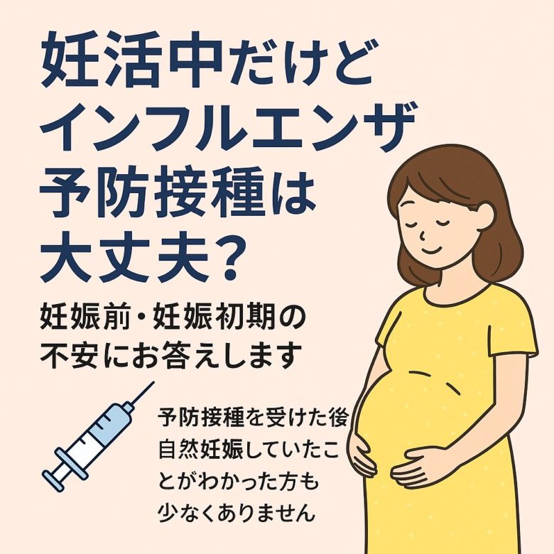 妊活中のあなたにとって、「赤ちゃんを迎える準備」と同じくらい大切なのが、自分自身の健康を守ることです。インフルエンザ予防接種は、妊娠のごく初期でも安全性が確認されており、実際に「接種後に妊娠が判明した」ケースでも問題なく出産された方は少なくありません。